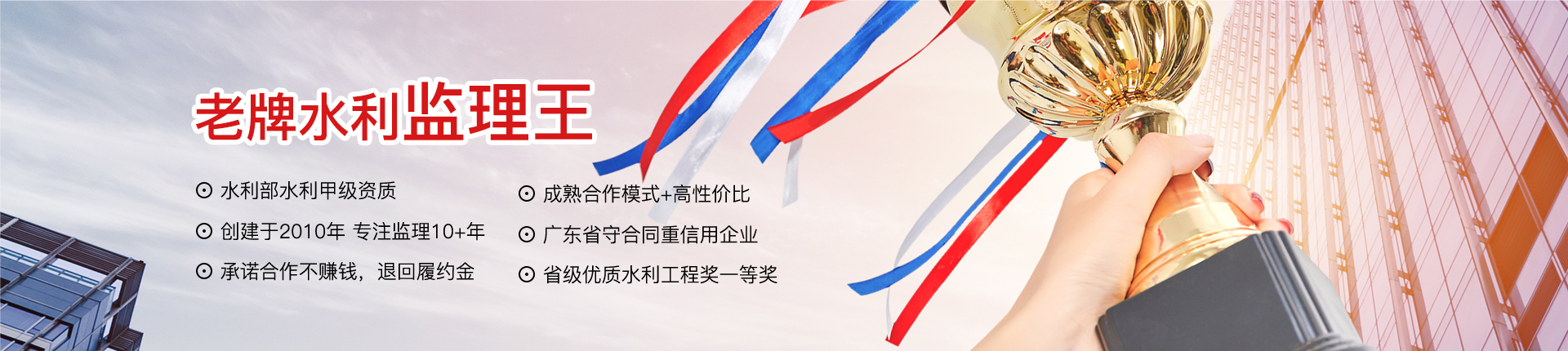 廣東中水工程監理有限公司成立于2010年7月,是一家工程監理綜合性服務企業。公司擁有水利部水利甲級、房屋建筑/市政公用甲級等資質,被列入廣東省政府采購代理機構指定企業,多次獲得“廣東省守合同重信用企業”等榮譽。